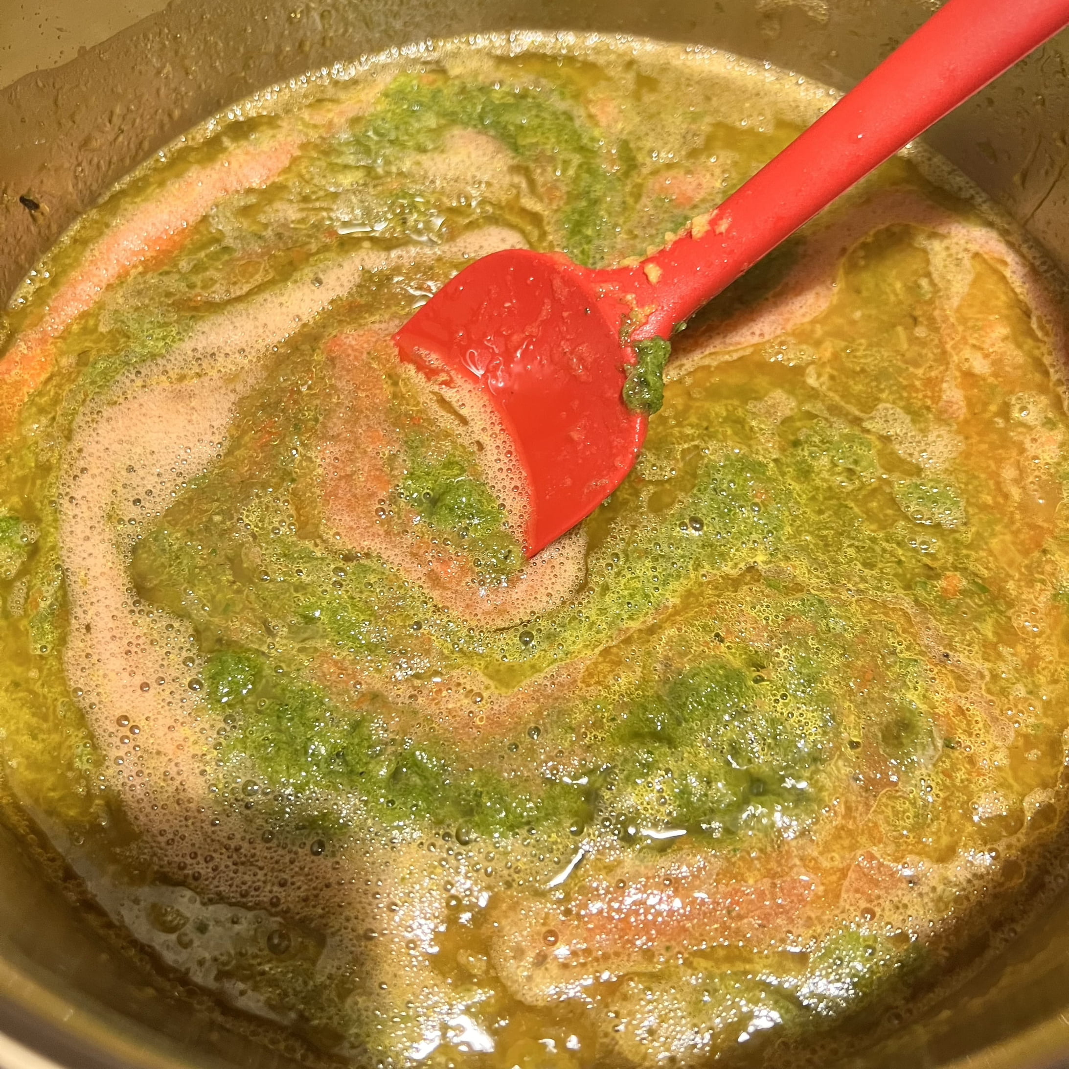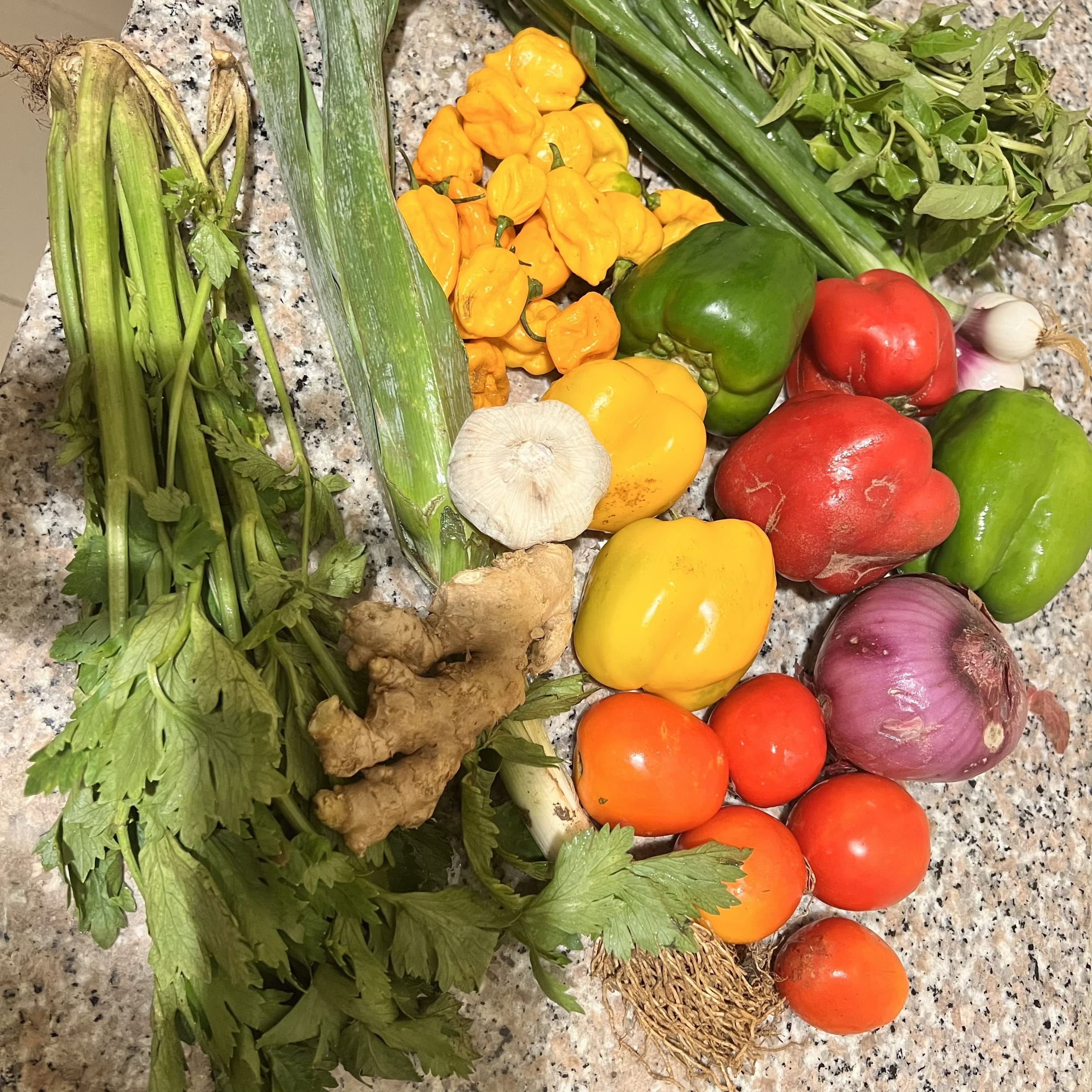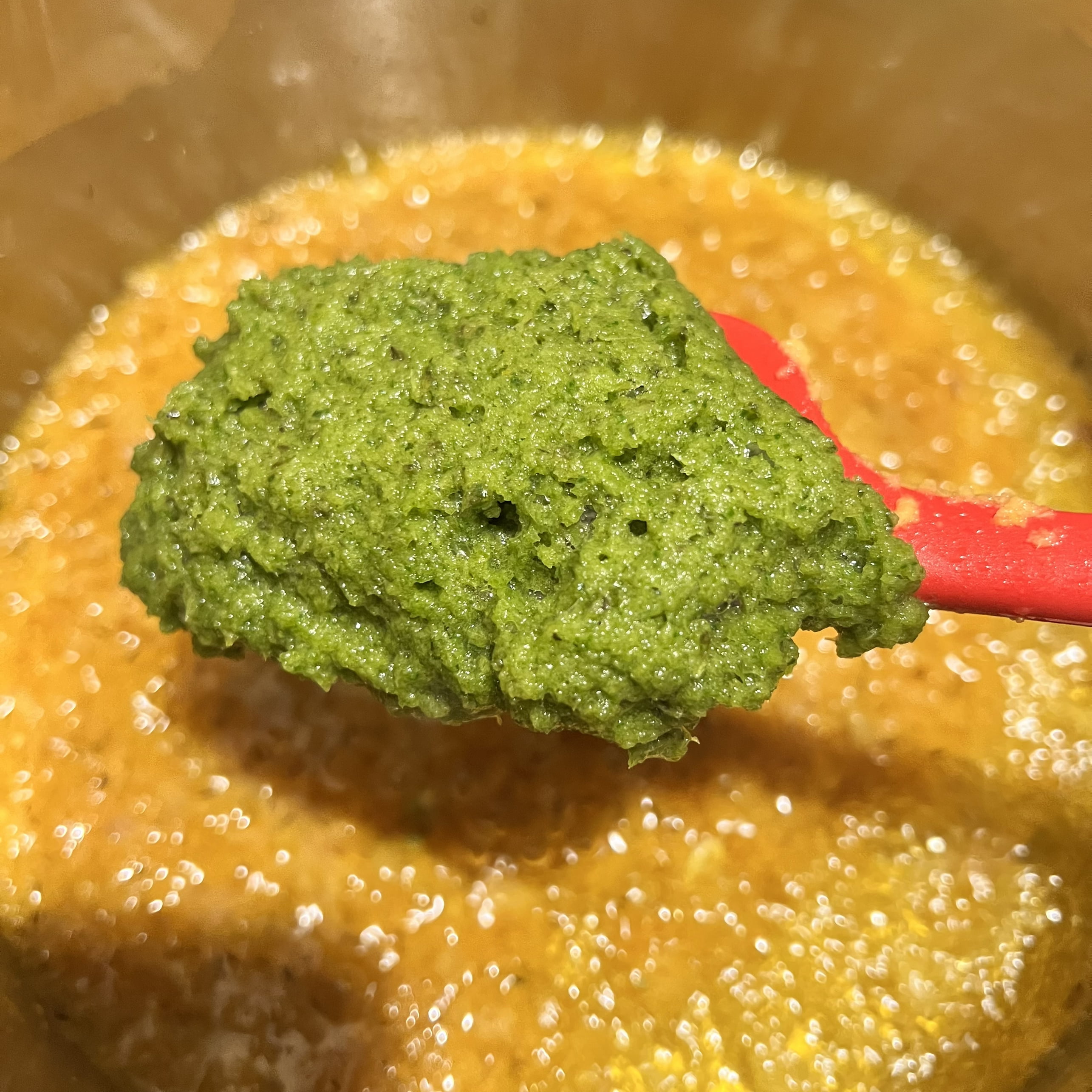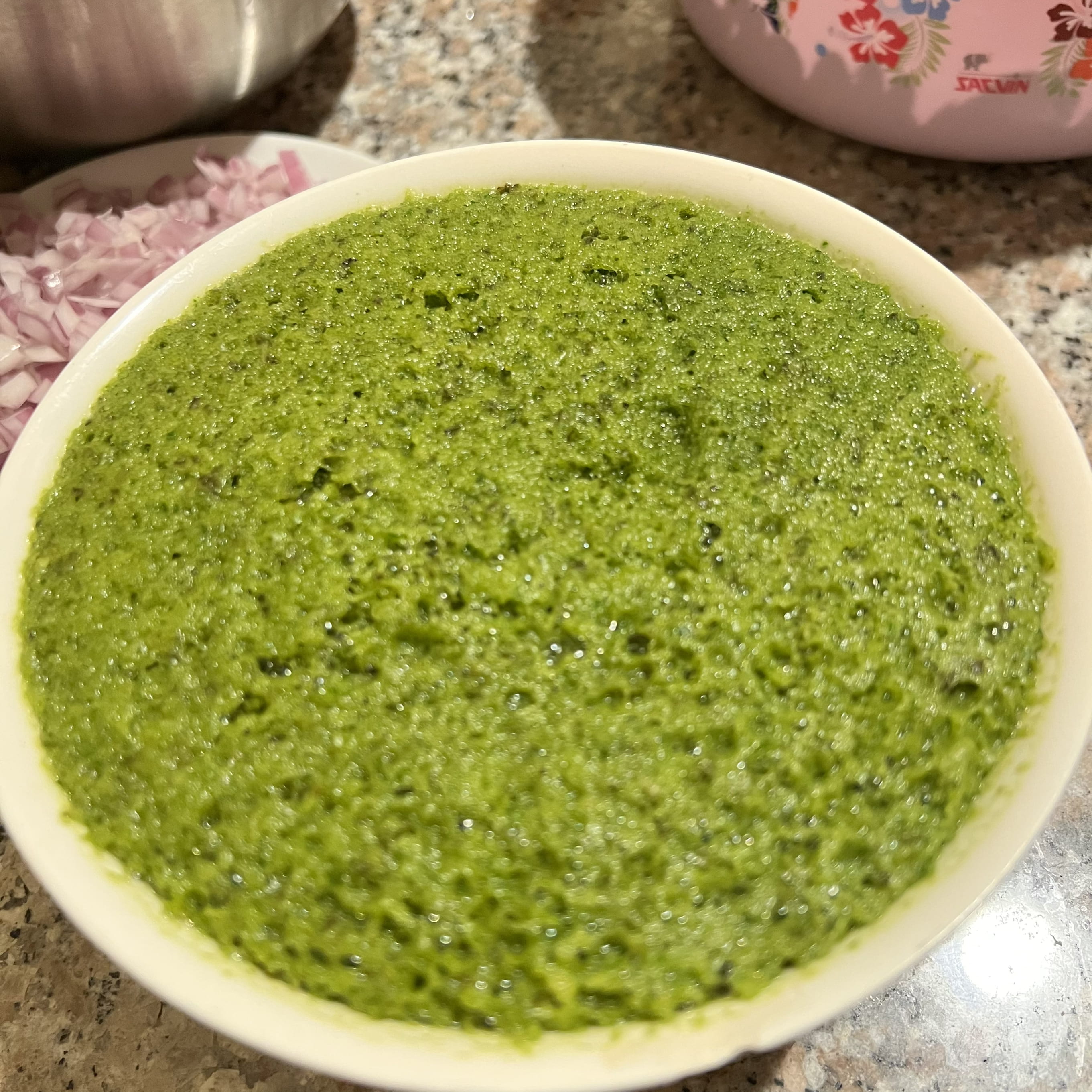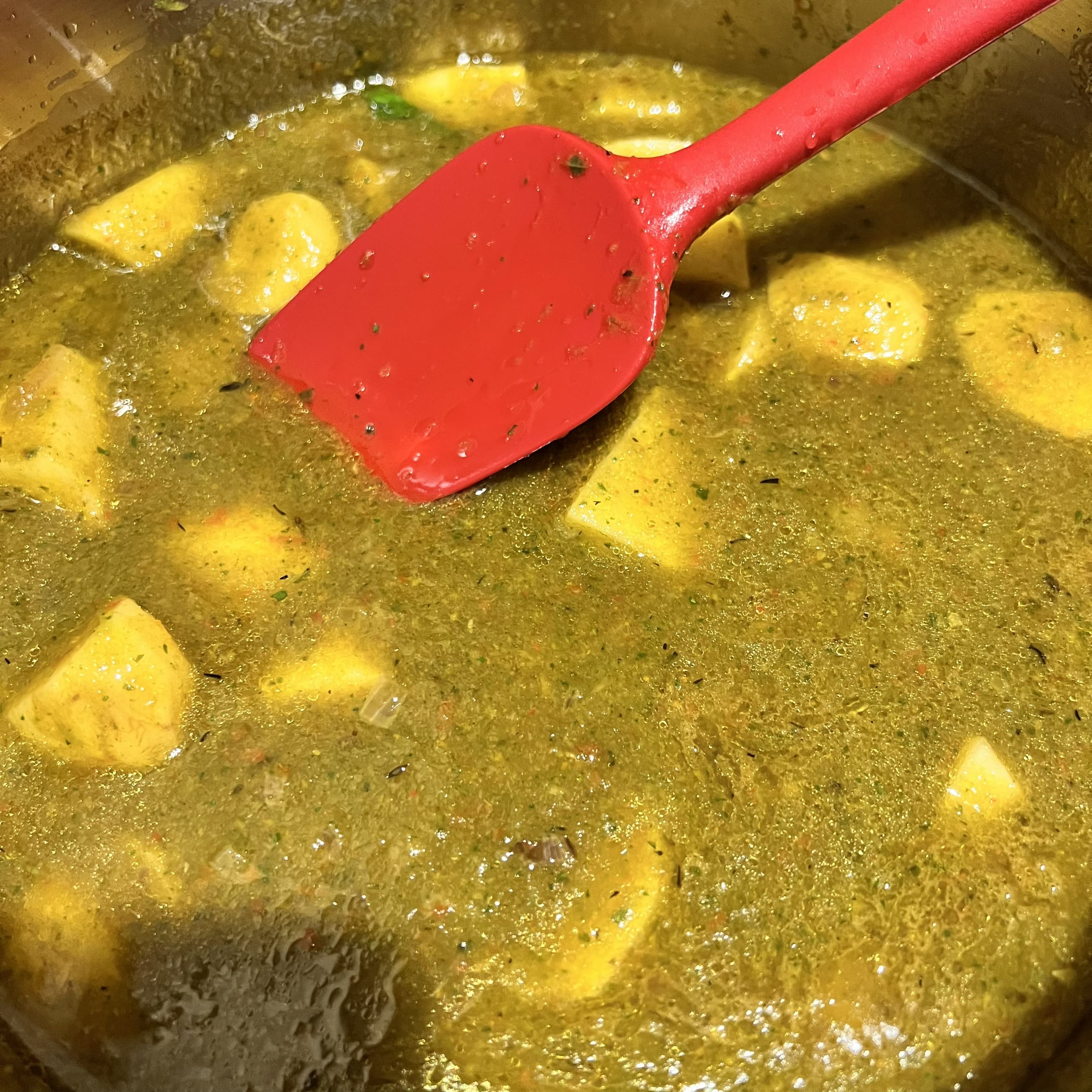 *GREEN MIXTURE: blend the onion leaves, celery leaves, leek, curry leaves and green bell pepper